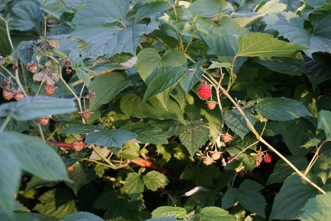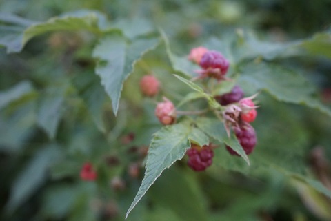 The raspberries begin to ripen in the woods. Purple Coneflower