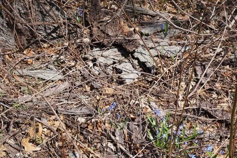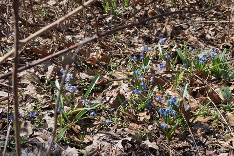 April showers and warmer temperatures mean plants are starting to leaf out during the second half of the month. Wildflowers blooming in the woods include Marsh Marigold, Woodland Squill, Lesser Celandine, and if the weather has been warm Virginia Bluebells.
