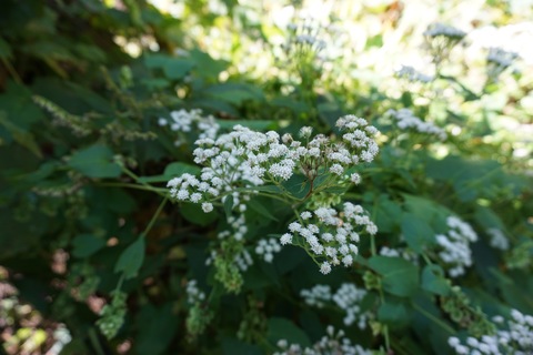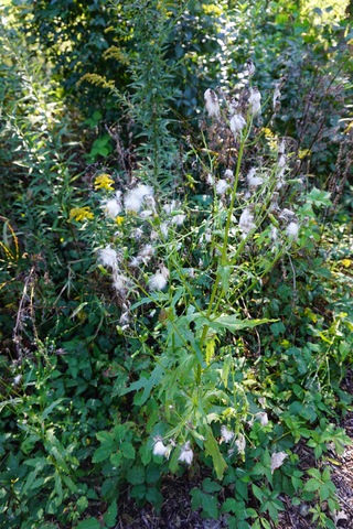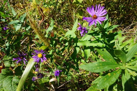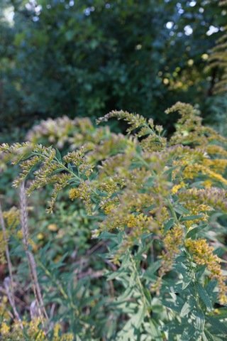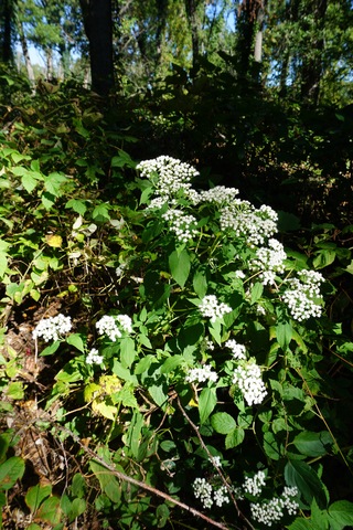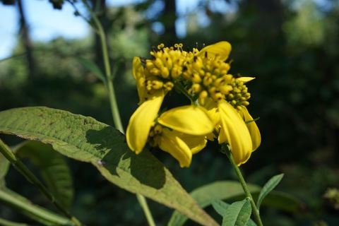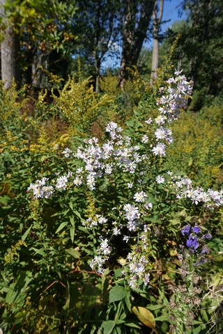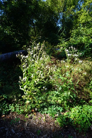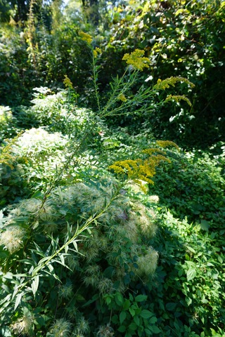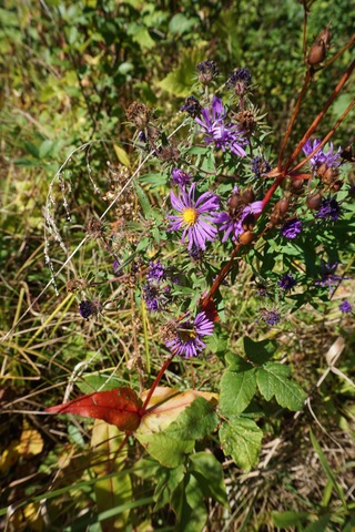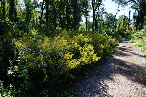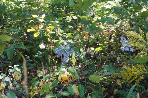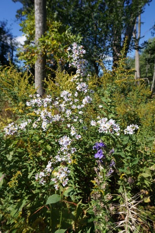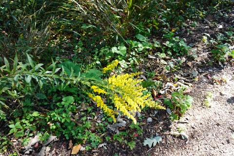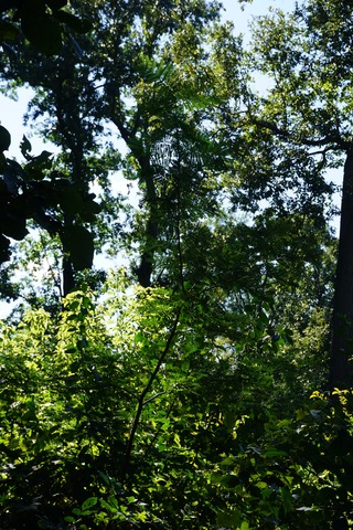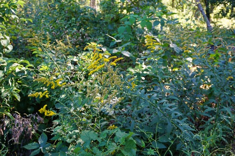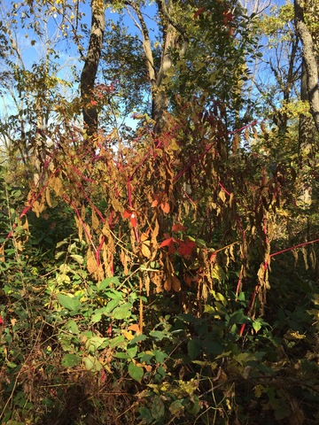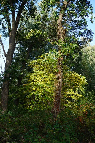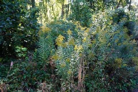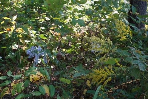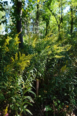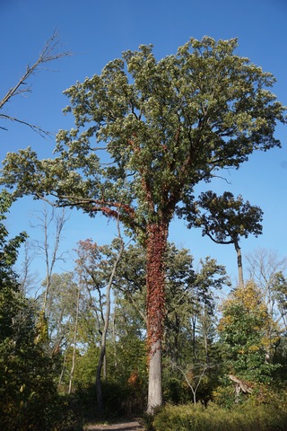 In fall, the trunks of the towering oak strees turn red as Virginia Creeper and Poison Ivy vines change color. Shagbark Hickory & Ash leaves are turning yellow. Goldenrod, Asters, Ox-Eye Sunflower, and a few other late wildflowers are still blooming.